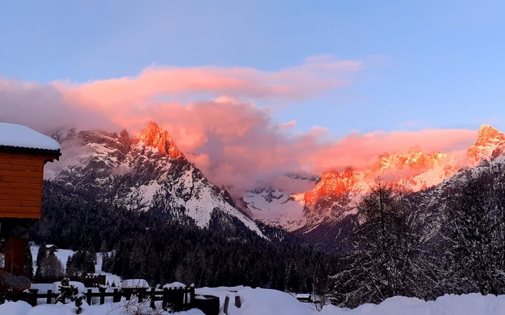Spesso non ci si pensa, ma il tramonto in Val Canali è una tappa obbligata sei un dolomitico incallito o un’anima romantica. Una facile passeggiata alla portata di tutti in compagnia delle guide del Parco di Paneveggio Pale di San Martino nella candida atmosfera invernale ai piedi delle Pale di San Martino ammirando la conca del Pradidali fino ad arrivare a Malga Canali quando tutto si tinga di rosa.