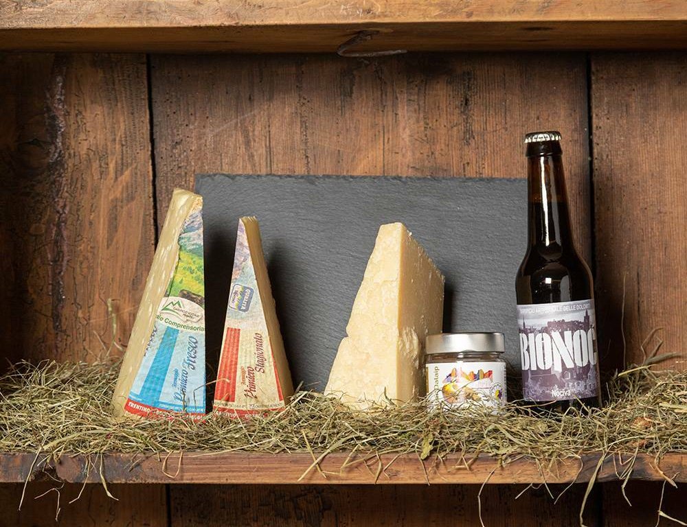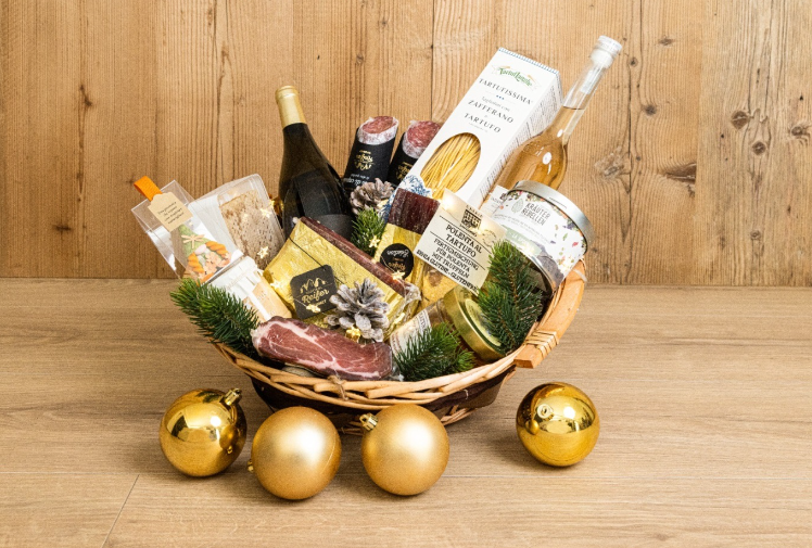 Confezioni di tantissimi tipi, per ogni gusto e con diverso budget di spesa, con all'interno vini di prima qualità, selezione delle migliori grappe, dolci tipici, confetture bio, speck e salumi, la celebre pasta Felicetti abbinata a deliziosi sughi e ragù, formaggi selezionati del Caseificio di Primiero, la birra artigianale Bionoc e molto altro. E’ possibile aggiungere un messaggio di auguri per rendere il regalo ancora più speciale.