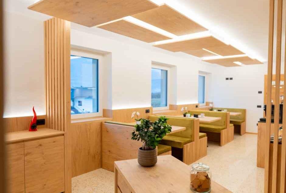 The rooms, thoughtfully designed and furnished in a modern Alpine style, ensure comfort and tranquility. In the morning, guests can enjoy a rich breakfast featuring local products, homemade cakes and regional specialties — the perfect way to start the day with authentic flavors.