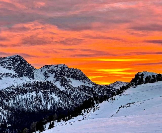 Lo spettacolo della natura inizia fra poco, giusto il tempo di rimettersi le ciaspole, e alzare gli occhi verso le vette: va in scena l’Enrosadira direttamente dal “Paradiso”! Un crescendo di emozioni, un’esplosione di colori dal giallo al rosa, che ti farà sentire un tutt’uno con la meraviglia che ti circonda.