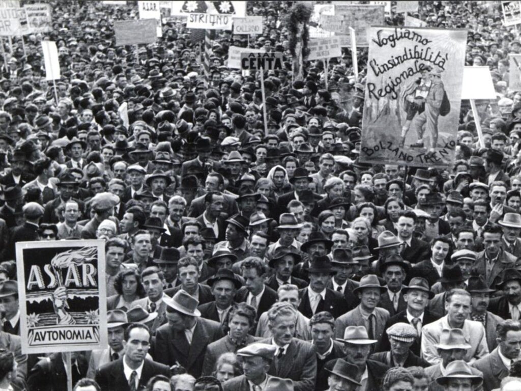 La mostra, promossa dall’Assessorato provinciale per la promozione della conoscenza dell’Autonomia e curata dalla Fondazione Museo storico, ripercorre il ritorno alla vita democratica in Trentino nel secondo dopoguerra, in un contesto segnato da distruzione, povertà e profonde trasformazioni sociali. A partire dal maggio 1945, con la fine del regime e dell’occupazione tedesca, si assiste a una straordinaria rinascita della partecipazione politica e civile, nella quale partiti e movimenti, sostenuti da un ampio coinvolgimento popolare, convergono nella richiesta di un nuovo assetto istituzionale. La rivendicazione autonomistica, trasversale alle diverse forze politiche, prende forma attraverso proposte di statuto, studi e iniziative promosse da soggetti come il Centro Studi per l’Autonomia Regionale e l’ASAR, fino a culminare nella concessione dello Statuto di autonomia del Trentino-Alto Adige nel 1948, atto fondativo di una storia autonoma destinata a svilupparsi nel tempo.