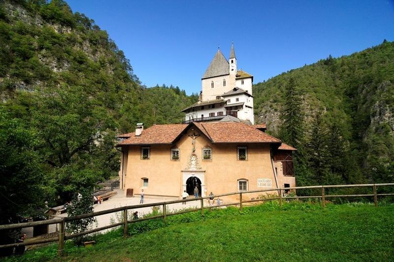 Raggiunto Sanzeno proseguiamo in auto per qualche chilometro fino a raggiungere il maestoso Santuario di San Romedio, uno dei più caratteristici eremi e testimoni della fede cristiana d’Europa. Non possiamo che rimanere affascinati da questo luogo dove il tempo sembra essersi fermato e dove il silenzio regna sovrano. I più sportivi non possono perdere l'escursione lungo il sentiero scavato nella roccia, che dal parcheggio di fronte al Museo Retico (che vale da solo una visita!) vi porterà direttamente al Santuario attraverso un suggestivo percorso lungo la parete di roccia, in completa sicurezza.