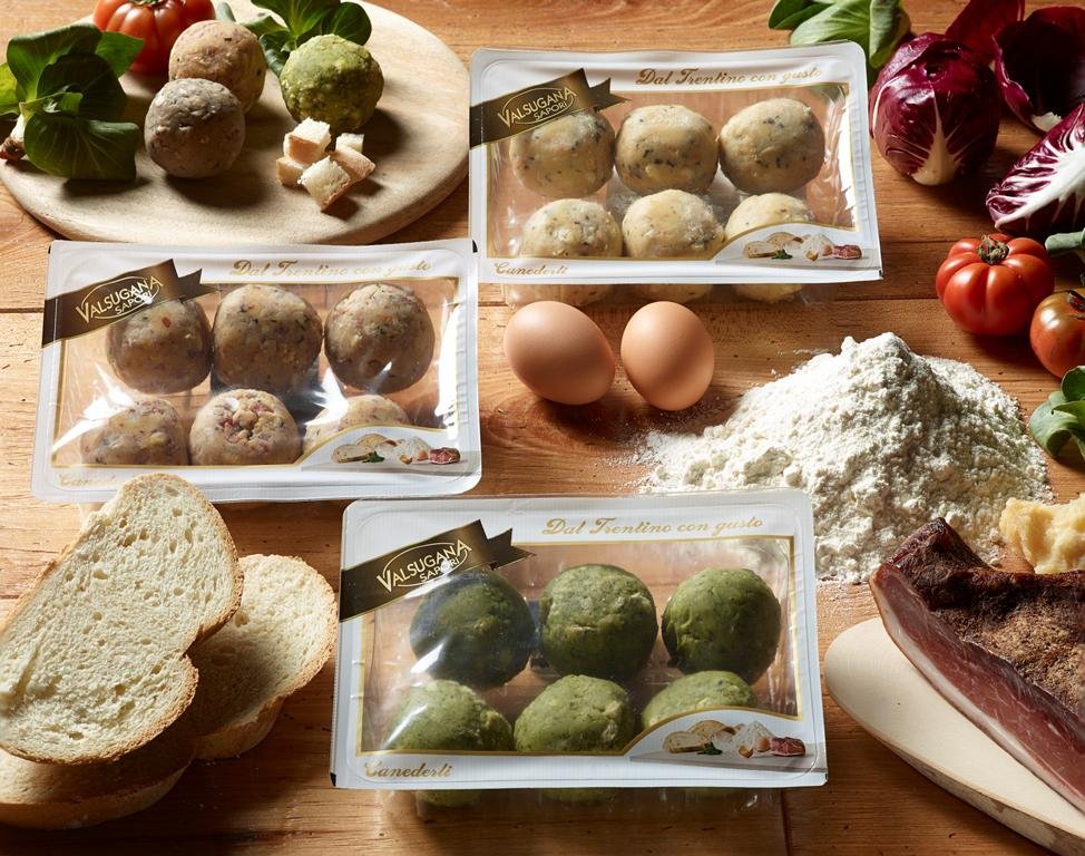 Valsugana Sapori produce pasta fresca di altissima qualità preparata in modo semi-artigianale, con ingredienti locali e freschissimi; accanto ai Canederli (primo piatto per eccellenza della tradizione gastronomica trentina) propone anche gli spatzle (gnocchetti tirolesi), strangolapreti e gnocchi di pane. Pratici e veloci da cucinare (cottura direttamente in padella in soli 3 minuti), questa particolare pasta fresca è adatta ad ogni occasione e ottima da gustare con moltissimi condimenti.