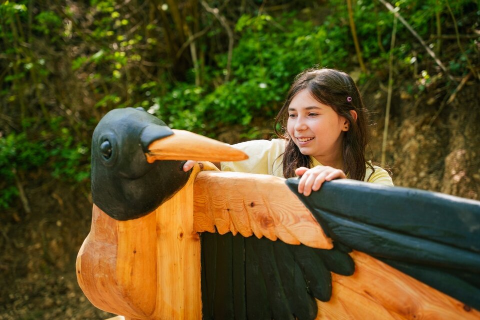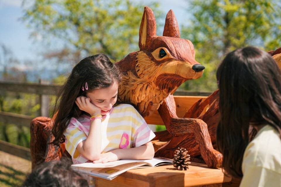 Lungo il cammino, i bambini vengono accompagnati da una storia illustrata che prende vita tappa dopo tappa. Dieci punti, riconoscibili grazie a suggestive sculture in legno, segnano le soste del racconto: qui ci si può fermare, leggere, osservare e immergersi direttamente nella narrazione.